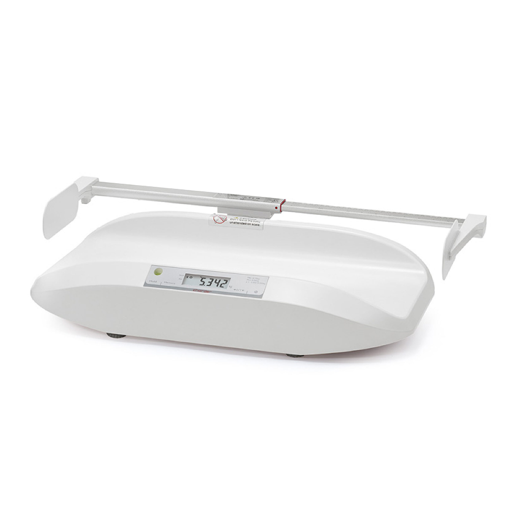 Elektroniczna waga niemowlęca klasy III przeznaczona do ważenia niemowląt w gabinetach lekarskich i placówkach służby zdrowia. Duży wyświetlacz LCD umożliwia szybki i łatwy odczyt wyniku. Dzięki dodatkowemu stabilizatorowi waga nie przechyli się podczas ważenia. Duża szalka wykonana z wysokiej jakości tworzywa „ciepłego w dotyku” daje się łatwo czyścić i dezynfekować. W połączeniu z opcjonalnym wzrostomierzem dokonanie pomiaru wagi i wzrostu jest szybkie i precyzyjne.