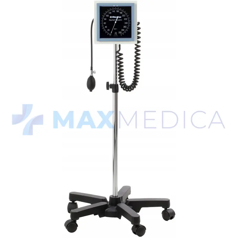Ciśnieniomierz Riester Big Ben jezdny z kwadratową tarczą to profesjonalne urządzenie diagnostyczne przeznaczone do pomiaru ciśnienia tętniczego u dorosłych pacjentów. Model wyposażono w stabilną podstawę jezdną, dlatego personel medyczny może łatwo przemieszczać urządzenie między stanowiskami pracy. Dzięki temu sprzęt doskonale sprawdza się w szpitalach, przychodniach oraz gabinetach lekarskich.